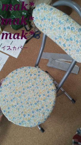 折りたたみイス座面が汚くなってきたのでイスカバーを作って欲しい。とリクエスト座面、背もたれのネジを外して布を切って糸でぐし縫い。簡単です座面は綿を足した方がよかったかな