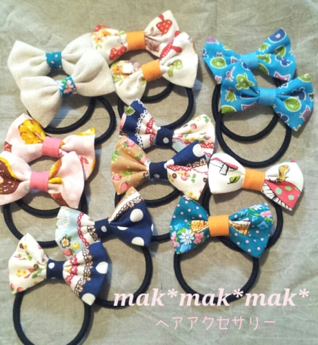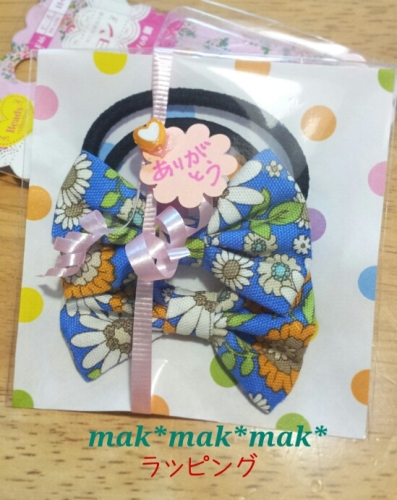 明日はホワイトデーですね。ヘアアクセ、リボンを作りました。作り方は 簡単です14cm×6cmの布を中表にして中心で1cmほど重なるように三つ折り両端を縫って表に返す。布の中心をM字に折り、リボン型にする。ゴム18cmを輪にくくってから M字にしたリボンの中心に縫い留める約3cm×5cmの布を5cm側を三つ折にして M字の部分に巻き縫い留めるしかし、、、文字だけではわかりづらい今度作るときは写真を撮りながら作ります今日はダイソーに行きラッピング用品を購入。可愛くラッピングできたので 明日ブログでUPしますにほんブログ村ブログランキング参加中クリックお願いします♪