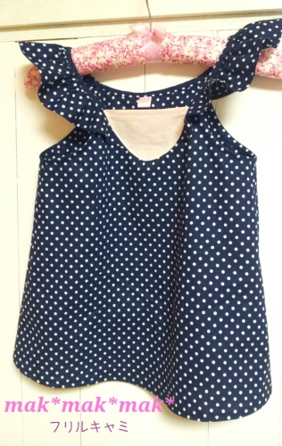 女の子服の型紙本を購入したので紺地に白ドットの布でサイズ130を作りました。丈は4cmほど長めにしています肩ひもの長さを間違えてしまいゴムを入れてごまかしました胸元の別布、逆カーブの縫い合わせ難しかったです…がカワイイ、キャミができました型紙 きちんと可愛い女の子服より フリルキャミブラウス布 イオンの手芸店で60cmのハギレ 200円→30%OFFで 140円【送料無料】きちんと可愛い女の子服 [ 荒木由紀 ]価格:1,470円(税5%込、送料込)この本、サイズ150・160も少し掲載されています。また女の子服、作りたいにほんブログ村ブログランキング参加中です。クリックお願いします♪