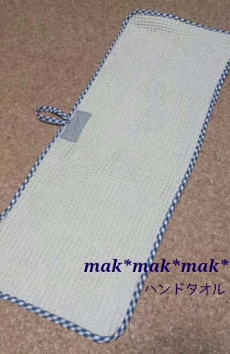 紺色チェックバイアスで 昨日と同じインド綿ワッフルのハンドタオル前回の花柄よりはうちのトイレに合うかなサイズ約 52cm× 21cmブログランキング参加中クリックお願いします。にほんブログ村