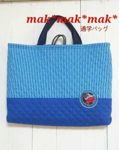 リクエストの キルティングの手提げバッグ。ポケモンのワッペンはミシンのプーリー(回しこま)を手で回しながら縫い付けました。飽きたら糸を解くだけで 替えることも出来ます低学年の間は机も低く 大きなカバンだと机の横にバッグをかけると底が床にあたってしまいます。学校からの連絡プリントにも縦の長さは40cm以下となっていましたができあがったものは 長さ43cm…少し長かったので、フック用にひもを取り付けました。これでリクエスト1件目の 小学校入学用品製作完了。ひきつづき2件目の 手提げバッグや巾着を作ります【入学入園おめでとうセット】ポケットモンスター 【送料無料】【豪華3点】 ポケモン XY 通...価格:4,987円(税5%込、送料込)【ポケットモンスターXY(ポケモンXY)】【キャラクター】【アイロン】【ワッペン キャラクタ...価格:609円(税5%込、送料別)先日 手芸店の 加工賃表を見て 加工賃の高さにびっくりしました。レッスンバッグ 1780円 材料費もいれると3000円はかかりそうですね。裁縫ができてよかったーと思う瞬間ですブログランキング参加中。クリックお願いします。にほんブログ村