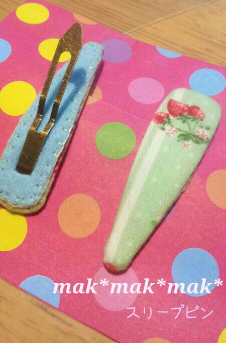 フェルトを中に入れて作りました。けっこう手間がかかりますボンドか両面テープも試してみよう。。パッチンピン(スリープピン)は手芸部仲間にもらいましたヘアアクセサリーの基本、ヘアピンパーツパッチンピン5cm 三角10個[pp-n5-003]価格:100円(税5%込、送料別)ブログランキング参加中ですクリックお願いしますにほんブログ村