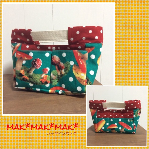 リアルきのこ布でバッグインバッグ色合わせが難しかったキャンディーパーティー シリーズの布はどれも素敵型紙:Pattern by BEE FACTORY さんの型紙をアレンジ布:お友達から。ブログランキング参加中ですにほんブログ村クリックお願いします!