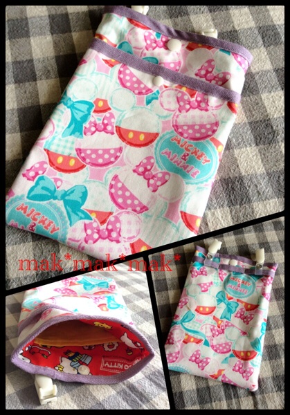 まさかのミッキーとキティのコラボ手ぶらでお出掛けの時に 必要最低限の物小銭入れ、携帯、ハンカチ、ティッシュ、鍵 等を入れるのにちょうどいい大きさです布:イオンの手芸店で20cm購入。にほんブログ村