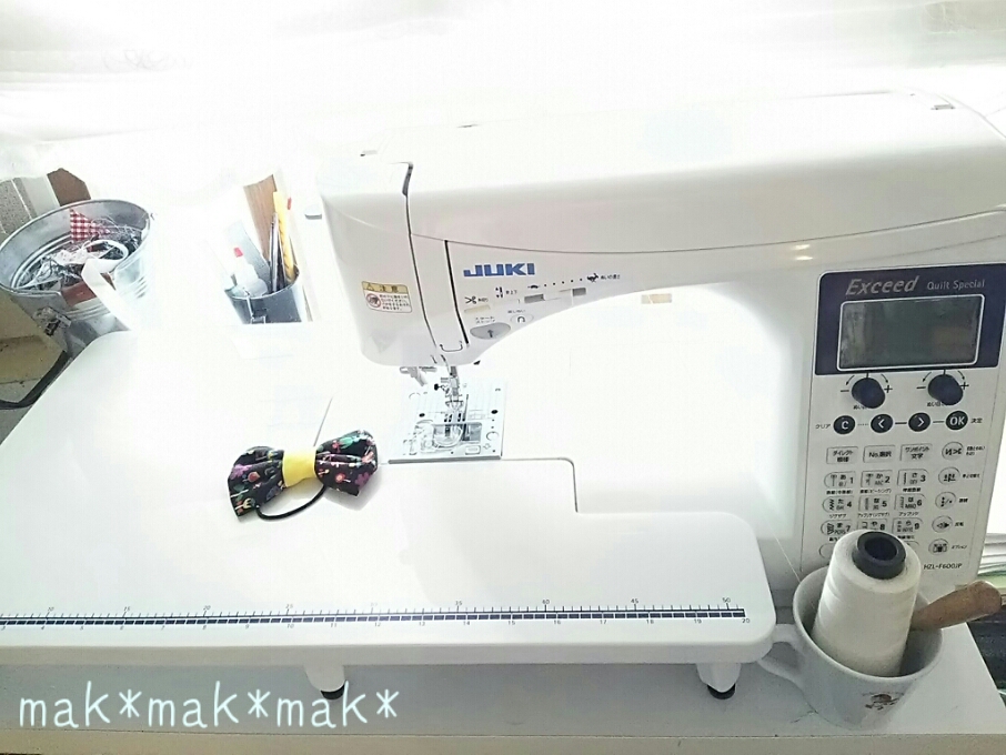 10年前に19,800円で買った、JANOME Nuikiruでミシンをしていましたがそろそろ いいミシンを買おう!とミシン1番の実店舗11日に茨木市のマツモトミシンさんへ手芸部仲間と行ってしました。エクシードに決めて行っていたのですが欲しかった600は展示されておらず他のミシンを見せてもらったり少しお話を聞かせてもらいました。エクシード600の在庫がなくお盆休みに入るので届くのは来週。と残念に思っていたらメーカー直送にしていただけたので、今日、届きました初めてのコンピューターミシン。今までの電子ミシンにはない機能が満載で作品作りが早くなるのに期待しています!今まで置いていたミシンスペースに収まりました。とりあえず、自動とめぬい糸切り機能を使ってヘアゴム作りました。糸切りハサミなしで作れるのに感動。大物も作ってみたい!にほんブログ村
