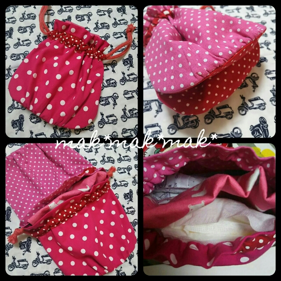 きゅつとぷち袋はお弁当の他にコスメや子供のお出掛けおもちゃの収納に。お揃いでティッシュケースも作りました。minne販売中☆(^ー^)minneで布小物の販売始めました。訪問おまちしております♥にほんブログ村ブログランキング参加中ですこちらも クリックおまちしています♥