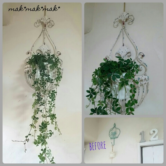 取り付けただけのDIYですが、大阪梅田の第4ビル地下のZouka-yaさんが移転閉店saleをしていたので見に行くとアンティーク調のアイアン壁掛けが2割引きの2,160円でした。ちょうどシュガーバインが伸びに伸びてカットしないとな。と思っていたので購入。んー。やっぱり長すぎる5月にイオン京都へ移転オープンみたいです。楽天市場にも出店されています。にほんブログ村ブログランキング参加中ですminneで布小物の販売始めました。