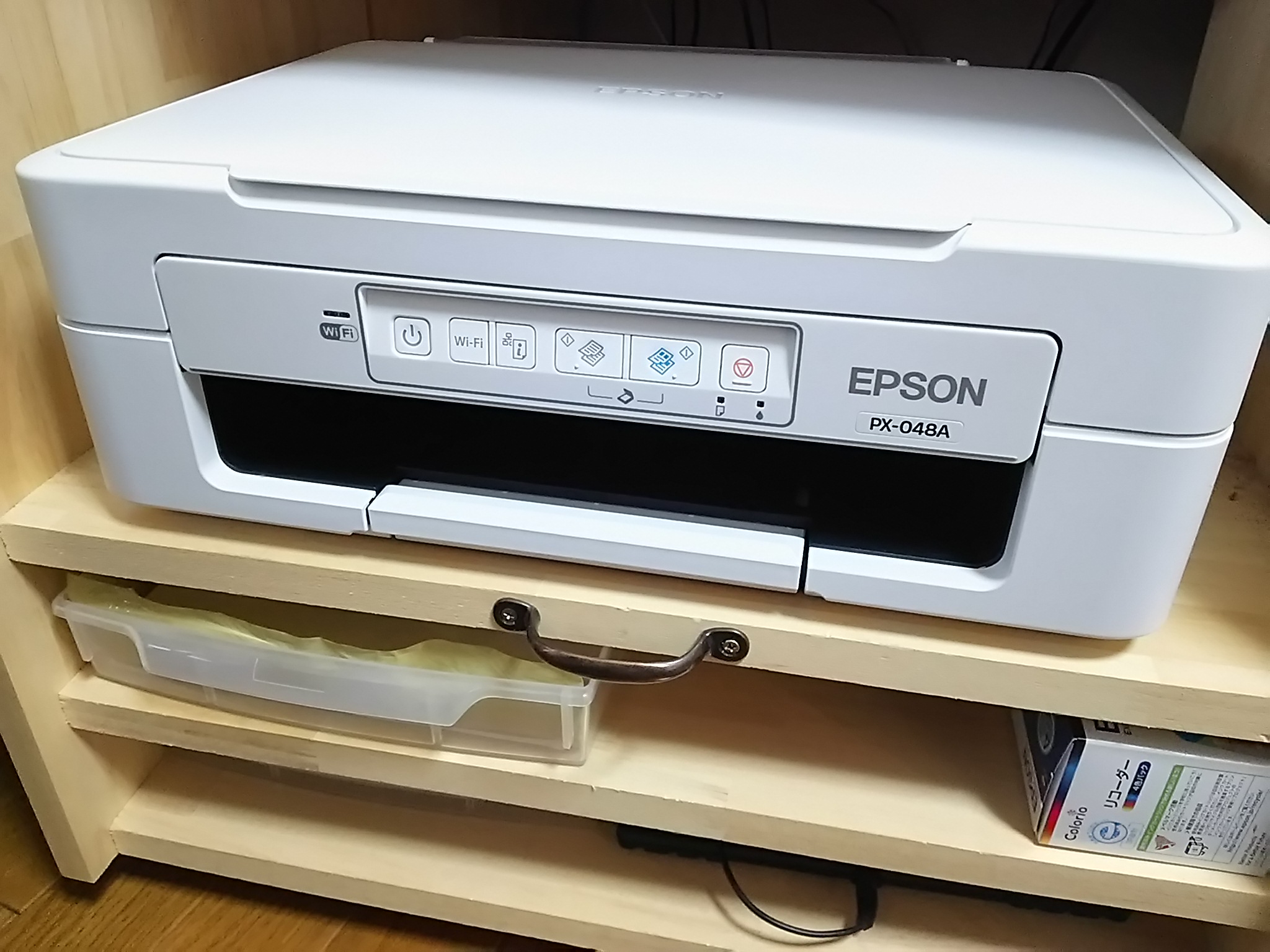 前のキャノンは6年位使用。インクがなくなったのでエプソンの4色インクに買い替えました。コンパクトサイズになったので前にDIYしたプリンター収納にもスッキリ収まりました。クリックポストの宛名印刷でモノクロ設定にしていたのに赤や黄色が混ざったお見苦しい印刷で発送していましたが(スミマセン)コレでちゃんとしたモノクロが印刷できます(^^)d旦那さんはプリンター購入反対でコンビニプリントで充分だ!と。女子は出掛ける時にはイロイロ準備もいるし雨の日も風の日も寒い日も暑い日もある。絶対使うなよ。と心で思っている、まきんこです('ε'*)近くのJoshinで買いました。Wi-Fi設定も簡単でしたPX-048A【税込】 エプソン A4カラープリント対応 インクジェット複合機 EPSON C…価格:8,830円(税込、送料込)
