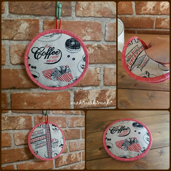 昨晩、もう1つ作りました。まんまる鍋つかみ。赤色ダンガリーをバイアスに使ったのでカジュアルになりました。昨日のコーヒー柄ブラックとminne登録しました。minneマキマキギャラリーへのご訪問おまちしております(*^^*)⬇⬇にほんブログ村ブログランキング参加中ですこちらも クリックおまちしています♥