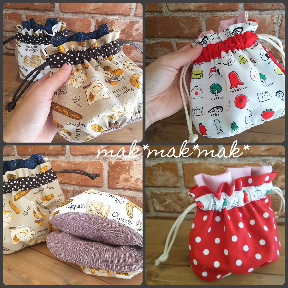 にこいち巾着Lサイズ 3個作りました。お弁当のおかず柄は出来上がってから織りキズを発見(゜_゜;)黄色ドットの布がなくなったので、またいつか作ります!パン柄は大人の巾着になりました!Sサイズも作れるかな?と考え中。Handmade shop マキマキ先週openしたshopでは只今オープン記念で2,000円 以上購入いただくと送料無料となっております。minneはこちらどちらにも訪問おまちしております♥にほんブログ村ブログランキング参加中ですこちらも クリックおまちしています♥
