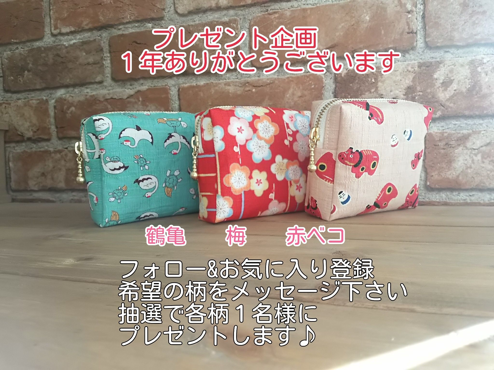 昨年12月19日に初めて作品登録をしてから1年が経ちました🎵びっくりするくらい沢山の素敵なご縁をいただけて感謝です!最近気に入って作っているミニしかくポーチを和柄で3個作りました。こちらを各1名、合計3名様にプレゼントします!minneのサイトよりメッセージにて希望の柄を教えて下さいませ。1月10日に当選者の発表をします!メッセージからのご応募だと応募者が少ないかな。と思いましたが前回のプレゼント企画で連絡をとるのにちょっと心配な事があったのでメッセージからの受付にさせていただきました。応募者が少ないと当たる確率は大きいです!(*^-^*)minneはこちらご応募お待ちしております。さて、2016年も今日で終わり!自己満足で誤字だらけのブログにおつきあいいただいて本当にありがとうございました!来年もどうぞよろしくお願いいたします。Handmade shop マキマキ只今オープン記念で2,000円 以上購入いただくと送料無料(2016年12月31日まで)です。どちらにも訪問おまちしております♥にほんブログ村ブログランキング参加中ですこちらも クリックおまちしています♥
