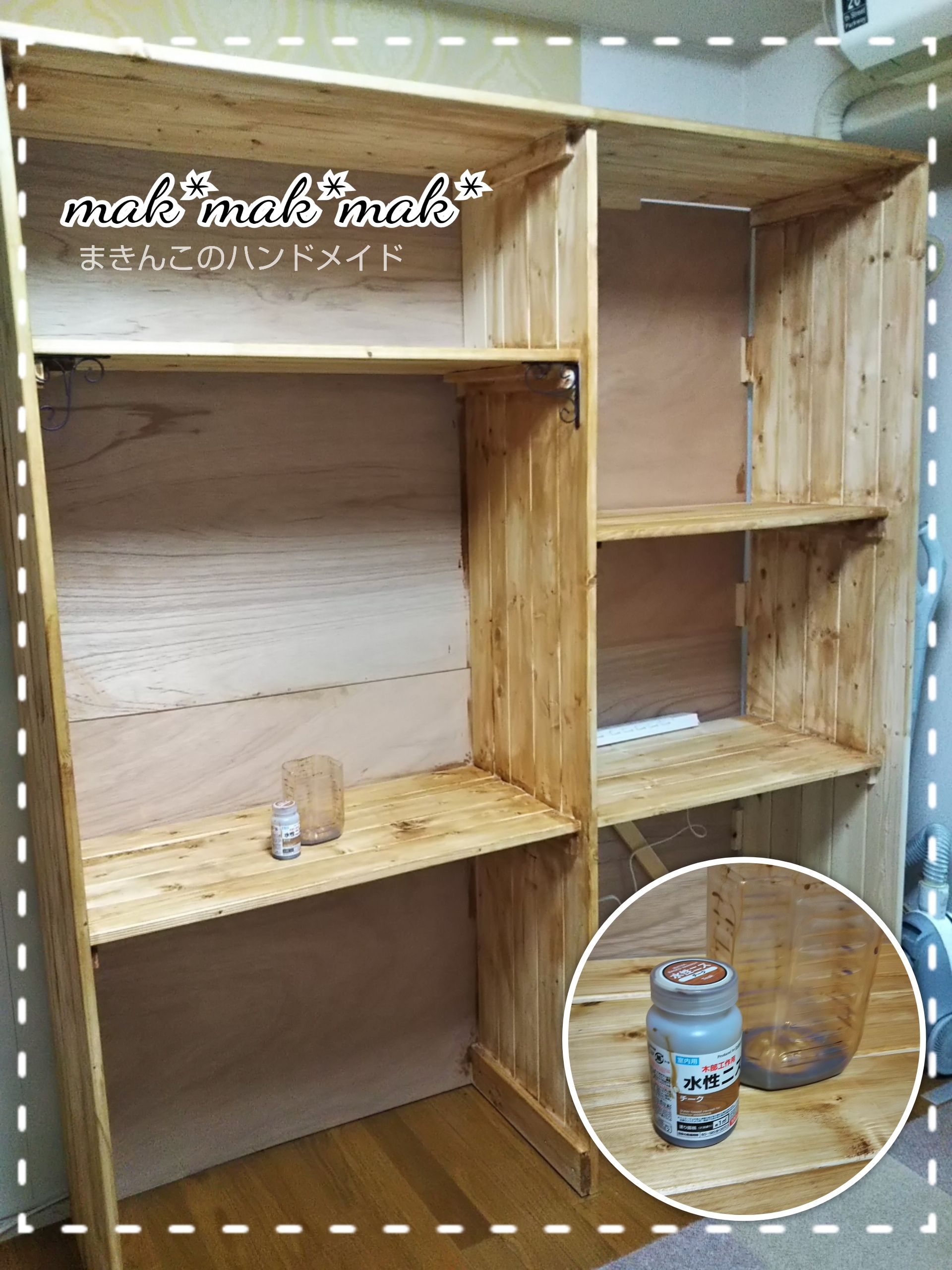 ダイソーでステインを購入(チーク色)半分に切ったペットボトルに移して見える部分にだけ塗りました。で、さっそく旦那さんがパソコンのセッティングをしちゃいました。背板の壁紙は不要とのこと。プリンター用紙等の収納に上部に棚を1段椅子の奥に奥行き浅めの棚をちょっとつけようかなと考え中連休中に左側の背板部分に壁紙を貼りますo(^o^)o写真に撮るとコードのぐちゃぐちゃ感が気になりますね(..)まきんこのハンドメイドショップ ラクマ⬇https://fril.jp/shop/ma_ki_ma_kiminneはこちらどちらにも訪問おまちしております♥にほんブログ村ブログランキング参加中ですこちらも クリックおまちしています♥
