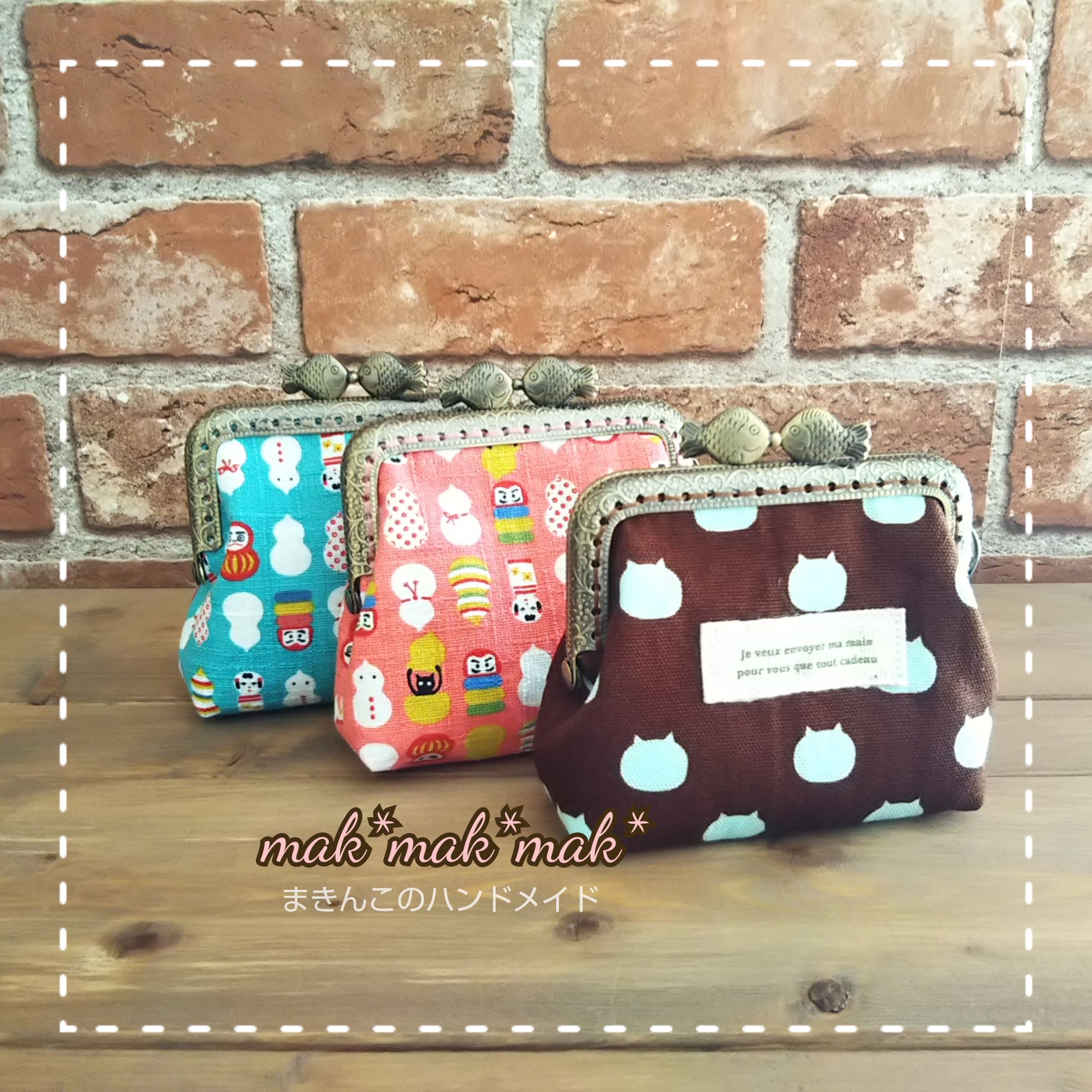 縫い付けタイプのがま口作りました(^^)がま口には和柄が合う!と思います(*^^*)魚型のがま口なので、ねこ柄も!インフルエンザが猛威振るいすぎて息子の参観が中止になりました(>__