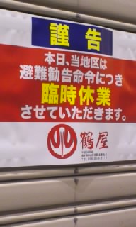 大雨の次の日から、テレビCMでは携帯電話各社による「災害伝言板の使い方お知らせ」を流してました。朝刊には、既にたくさんのお見舞い広告が載ってました。休業を詫びるデパート保険・共済関係の一斉広告自動車メーカーの広告。車が冠水した場合の対処法なども書いてある。新聞広告の世界について何も知らないので不思議に思ってしまうが、日頃はライバルであるはずの各社が一斉にほぼ同じ文面の広告を隣接して載せるというのは、なんなんだろう?どの会社もそういう担当者がいるのか、広告代理店が一括で載せる約束になっているのか?小さな疑問でした。