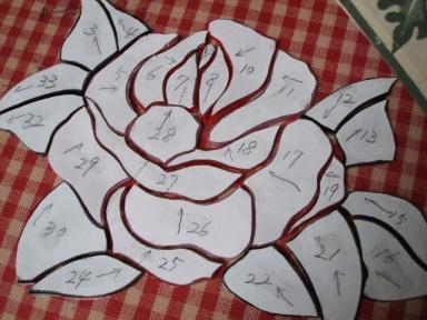 先週、ガラス板を抱えて帰ってきて、中々広げる時間が無かったのですがやっとカット完成しました(*´ο`*)=3 ふぅ最初は大きなパーツから切り出し・・・段々細かくなっていくパーツ・・・・・要領が今一掴めず、最初は何枚か失敗・・・・段々、ペンチで挟む位置とか、切り方とかのコツが分かってきて分かってきたら早い早い(手は慣れると結構早手の方です)午前中で全てカット完了大元の型紙は教室に置いて来てしまったので、番号順に並べると多分、こんな感じかな型紙がまだ外せないので、色の感じが分かりにくいんですが、薔薇の真ん中の部分・・・・目茶目茶、ちっこい~・・・・・こんなちっちゃなパーツもあると、切った残りかすのガラス捨てちゃっていたけれど、捨てられなくなっちゃいます・・・・夢中になっていて、気が付いたら切り傷発見・・・・ステンドにはつき物かしら・・・・・(×_×# イタタ、・・・・・