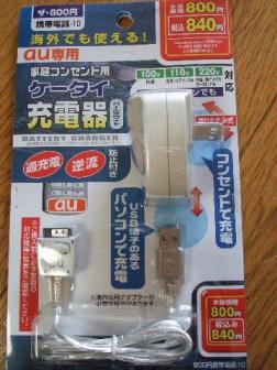やっと見に行ってきましたよ、アダプターずっとおねえと共同で使っていたので、あっちやったりこっちやったりはたまた部屋に持って行っちゃうので、やっぱ、買う事にしました相方から聞いていたダイソーへ・・・・・ありました、ありました お値段はヤマダ電機と同じだけど内容が違った PCのUSBからもコンセントからも両方出来る超便利物これは何処にも売ってなかった・・・・・即、購入お値段は、840円と、純正と105円しか変わらないけれど両方出来るのは家電店でもなかったですねな~んか得した気分で・・・・・何故か、、、、かごにはどっさりと・・・・パンツのゴムひも、靴下、耳かき、下着に縫い針にその他諸々・・・・・何時の間にこんなに・・・・・・でもでもでも、必需品だから・・・要らないものは無いから・・・・って、ここで誰に言い訳してるMy、お陰様で、快適に充電中ーーーー