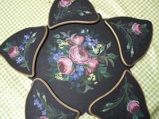 中央のテーブル部分はほぼ完成だったターンテーブル今日は周りの花びらにあたる、小テーブルの薔薇を描きあげました定位置に置いて見るとこんな感じになります・・・・・大アップでじゃ~~~ん超豪華・・・・・周りの花びらを含めると80センチ程の直径になってしまう・・・・・一体何処に飾るのか・・・・・さてさて、出張レッスンの序に、出来上がった商品を相方とお店に置いてきました・・・売れると良いな~~~~その後遅いランチをサイゼリヤで明日は久方にゆんたくに行ってみようと思っています