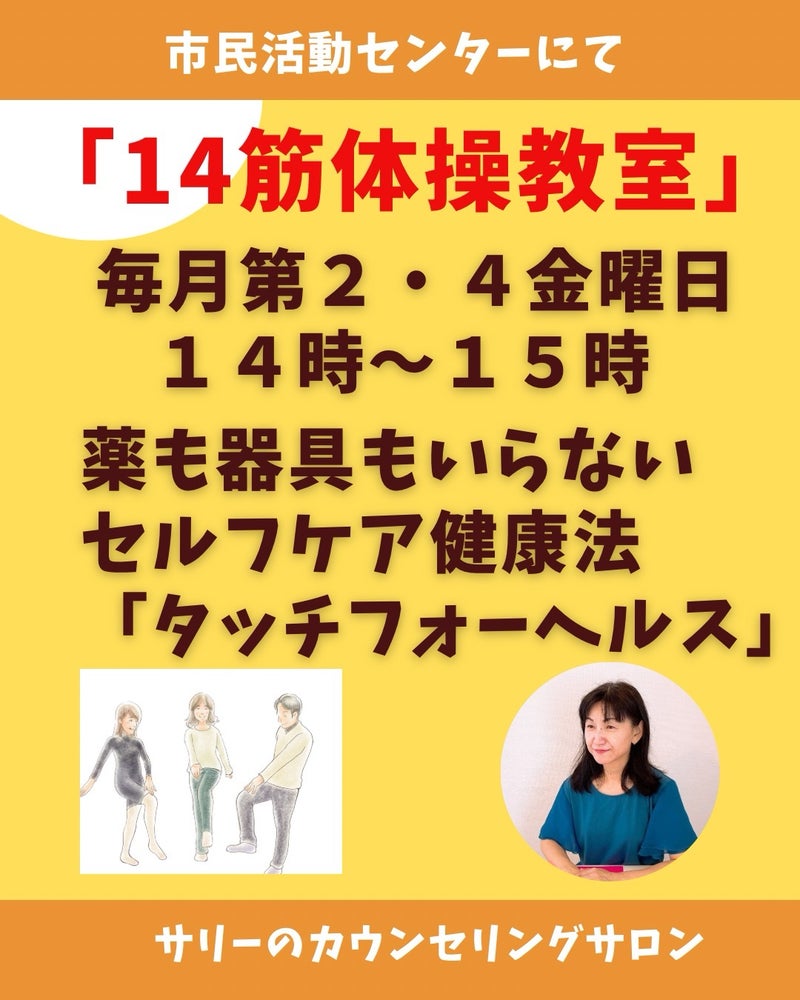 妻のブログです。 医者にいくらかかっても改善しない心身の痛み、人間関係、お子様の不登校などでお悩みの皆様。 対面とオンラインの両方で対応できますので、お気軽にご連絡ください。 各種リンクは、次の中にあります。 → 薬も器具もいらないセルフでできる健康法がタッチフォーヘルスです 薬も器具もいらないセルフでできる健康法です。 覚えたら、いつでもどこでもできます。 心身の痛みを解消して、自分の目標に向かっていけるように整えることができます。 それがタッチフォーヘルスです。 そのテクニックの一つ、14筋体操を鴻巣市民活動センターで教えています😊 毎月第2、4金曜日14時〜15時です。 毎回、筋反射テストで、目標設定したことが潜在意識で変化したかを確認しています。 ご興味がありましたらどうぞご参加ください。 他にも、さいたまスーパーアリーナでのヒーリングマルシェに参加します。 4/5〜4/6に実施します。 タッチフォーヘルスの体験ができます💕 タッチフォーヘルスを学びたい方には講座の開催もあります。 レベル1講座 5/24〜25 9時〜17時30分 会場 サリーのカウンセリングサロンまたはオンライン 自分の健康は自分で守ることができます。 そして、自分だけでなく家族にも使えます。 赤ちゃんから高齢者まで、全ての方に使えます。 タッチフォーヘルスで、健康と心の平和を手に入れましょう💕🍀 お問い合わせは、公式LINEまたは、HPよりお願いします🌈😊 筋反射テストの体験ができます。 タッチフォーヘルスは、赤ちゃんから寝たきりの高齢者の方にまで、使うことができます。 どう使うのか知りたい方は、どうぞ体験会もあります。 無料相談も受付中です。 30分の無料相談もお受けしています。 ご希望の方は、「相談」とコメントくださいね。 サリーのカウンセリングサロンHP※ タッチフォーヘルスは、「自分の健康は自分で守る」という目的で作られました。 1970年以来すでに全世界112ヶ国以上で活用され、姿勢とエネルギー(気)をバランスすることが元気になる効果的な方法だと1000万人以上の人によって実証されてきました。 国によっては医療と認められています。 日本には、「病は気から」という言葉があります。 まさに、自分へのストレスが病気の源です。 タッチフォーヘルスは、自分に対して使えるセルフケアであり、大切な家族にも使えるものです。 学んだら誰でも使えます。 健康寿命を延ばして、いつまでも楽しく人生を過ごしていきましょう💕 2025年1月から、埼玉県熊谷市にあるシェア型書店「太原堂(たいげんどう)」における棚オーナーのひとりとして参加し、「虹色書店」の屋号で、好きな本の販売を始めました。 棚オーナーの皆さんや、お客様との交流によって、本と読書の世界を広げていきたいと考えています。 どうぞ、よろしくお願いいたします。 「太原堂」の公式ホームページは、こちらです。 ⇒ 「太原堂」 楽天ブログやSNS投稿をごらんいただいている皆様、いつもありがとうございます。 ⇒ 楽天ブログ「虹色のはるかな道 ~子どもの頃から好きだったこと~」 記事一覧 私の小さな旅や散歩、鉄道、読書、音楽、映画、特撮・怪獣、子どもの遊び、時事問題、各種講演会・セミナーの参加報告、そして、「13トリソミー」で生まれ0歳5か月でお空へと還っていった天使の拓海くんなどについてのフォトエッセイ『虹色のはるかな道』シリーズの最新刊『四季のお散歩旅 ~虹色のはるかな道6~』の紙の本が、Amazonに続いて、楽天ブックスでも発売になりました。 なお、Amazonでの電子書籍(kindle本)の発売につきましては、後日、お知らせします。 拙いものではありますが、ご興味がございましたら、どうぞよろしくお願いいたします。 ⇒ Amazonで販売 『四季のお散歩旅 ~虹色のはるかな道6~』 ⇒ 楽天ブックスで販売『四季のお散歩旅 ~虹色のはるかな道6~』私のInstagramは、こちらです。→ 友永孝浩 Instagram Facebookは、こちらです。→ 友永孝浩 Facebook Amazonでの紙の本→ 『雑誌感覚 ~虹色のはるかな道5~』 楽天ブックスでの紙の本→ 『雑誌感覚 ~虹色のはるかな道5~』 なお、Amazonでのみ販売されている電子書籍は、kindleという無料アプリをパソコンやスマホにダウンロードすれば、購入後、直ちに自身のライブラリに保存され、いつでも読むことができます。 文字や画像の拡大もOKです。 紙の本とはまたちがう味わいがあるかと思いますので、初めての方も、ぜひ電子書籍の世界を気軽にのぞいてみてください。 Amazonでの紙の本と電子書籍 → 『青空と白い雲の彼方 ~虹色のはるかな道4~』 楽天ブックスでの紙の本→ 【POD】青空と白い雲の彼方 虹色のはるかな道4 [ 友永 孝浩 ] 愛と幸せをたくさんくれた孫の拓海くんについては、感謝をこめて、『天国の拓海くん 幸せをありがとう ~虹色のはるかな道3~』で偲びましたが、拓海くんをめぐる数々の不思議な出来事や家族の思いをつめこんだ、拓海くんの特集本『お空の拓海くん 愛をありがとう ~虹色の