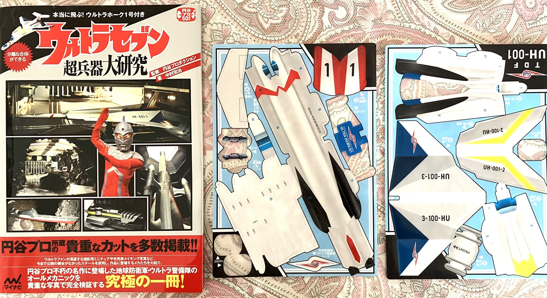 私は、『ウルトラセブン超兵器大研究』(著:中村宏治氏、発行:株式会社マイナビ、2013年4月)を持っています。 表紙には、「円谷プロ所蔵の貴重なカットを多数掲載!! ウルトラファンが渇望する撮影用ミニチュアや未発表メイキング写真など、今まで公開の機会がなかったスチールを使用し、作品に登場するメカたちを大紹介。 円谷プロ不朽の名作に登場した地球防衛軍・ウルトラ警備隊のオールメカニックを貴重な写真で完全検証する究極の一冊!」とあります。 確かに、番組制作から60年近くが過ぎても色あせないメカニック描写の数々が紹介されていて、満足できました。 そして、この本には、「本当に飛ぶ!ウルトラホーク1号」が付いています。 ポリプロピレン(PP。軽量で高い強度と耐久性のあるプラスチック材料)シートのパーツを切り離し、それらを折り曲げて組み立てるものです。 最近になって、作ってみました。 この本は、現在でも入手可能なようで、Amazonのカスタマーレビューを見ると、賛否両論。 こんなものは要らないから、本体価格(全63ページで、税込み1419円)をもっと安くしてほしいなどの意見がありました。 私にとっては、このウルトラホーク、よかったです。 昔、子ども雑誌には、こういった形式で紙製の付録がよくついてきて、はさみと糊とセロハンテープを用意し、プラモデル感覚で作りました。 本物と比べれば、ちゃちかもしれませんが、楽しかった印象が残っています。 小さかった頃の夢を追い続ける私には、今でもウルトラホークを作れることを大変素晴らしく思えます。 (これまでブログやエッセイで何度も書いていますが、往年の特撮キャラクターやメカについてのプラモデル化、復刻・安価での再販を熱望しております。) 2025年1月から、埼玉県熊谷市にあるシェア型書店「太原堂(たいげんどう)」における棚オーナーのひとりとして参加し、「虹色書店」の屋号で、好きな本の販売を始めました。 棚オーナーの皆さんや、お客様との交流によって、本と読書の世界を広げていきたいと考えています。 どうぞ、よろしくお願いいたします。 「太原堂」の公式ホームページは、こちらです。 ⇒ 「太原堂」 楽天ブログやSNS投稿をごらんいただいている皆様、いつもありがとうございます。 ⇒ 楽天ブログ「虹色のはるかな道 ~子どもの頃から好きだったこと~」 記事一覧 私の小さな旅や散歩、鉄道、読書、音楽、映画、特撮・怪獣、子どもの遊び、時事問題、各種講演会・セミナーの参加報告、そして、「13トリソミー」で生まれ0歳5か月でお空へと還っていった天使の拓海くんなどについてのフォトエッセイ『虹色のはるかな道』シリーズの最新刊『四季のお散歩旅 ~虹色のはるかな道6~』の紙の本が、Amazonに続いて、楽天ブックスでも発売になりました。 なお、Amazonでの電子書籍(kindle本)の発売につきましては、後日、お知らせします。 拙いものではありますが、ご興味がございましたら、どうぞよろしくお願いいたします。 ⇒ Amazonで販売 『四季のお散歩旅 ~虹色のはるかな道6~』 ⇒ 楽天ブックスで販売『四季のお散歩旅 ~虹色のはるかな道6~』私のInstagramは、こちらです。→ 友永孝浩 Instagram Facebookは、こちらです。→ 友永孝浩 Facebook Amazonでの紙の本→ 『雑誌感覚 ~虹色のはるかな道5~』 楽天ブックスでの紙の本→ 『雑誌感覚 ~虹色のはるかな道5~』 なお、Amazonでのみ販売されている電子書籍は、kindleという無料アプリをパソコンやスマホにダウンロードすれば、購入後、直ちに自身のライブラリに保存され、いつでも読むことができます。 文字や画像の拡大もOKです。 紙の本とはまたちがう味わいがあるかと思いますので、初めての方も、ぜひ電子書籍の世界を気軽にのぞいてみてください。 Amazonでの紙の本と電子書籍 → 『青空と白い雲の彼方 ~虹色のはるかな道4~』 楽天ブックスでの紙の本→ 【POD】青空と白い雲の彼方 虹色のはるかな道4 [ 友永 孝浩 ] 愛と幸せをたくさんくれた孫の拓海くんについては、感謝をこめて、『天国の拓海くん 幸せをありがとう ~虹色のはるかな道3~』で偲びましたが、拓海くんをめぐる数々の不思議な出来事や家族の思いをつめこんだ、拓海くんの特集本『お空の拓海くん 愛をありがとう ~虹色のはるかな道 天使編~』を改めて書いてみました。 拓海くんのことを、私たちは、多くの皆様に知っていただきたいと考えております。 どうぞよろしくお願いいたします。 Amazonでの紙の本と電子書籍→ 『お空の拓海くん 愛をありがとう~虹色のはるかな道 天使編~』 楽天ブックスでの紙の本→【POD】お空の拓海くん 愛をありがとう 虹色のはるかな道 天使編 [ 友永 孝浩 ] ウルトラマン、ゴジラ、仮面ライダーなど、特撮や怪獣の映画、テレビドラマ、音楽、プラモデル、フィギュア、ロケ地探訪、子どもの頃の思い出に特化したフォトエッセイは、こちらです。 Amazonでの紙の本と電子書籍 → 『遠い日の特撮・怪獣旅 ~虹色のはるかな道 特別編~』 楽天ブックス