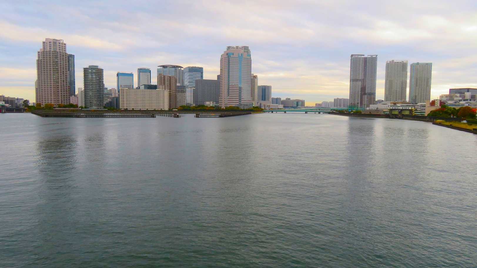 左岸が江東区豊洲、右岸が中央区の勝どき・晴海エリアで、高層ビル群が目立つ、東京港近くの都市景観を眺めることができます。