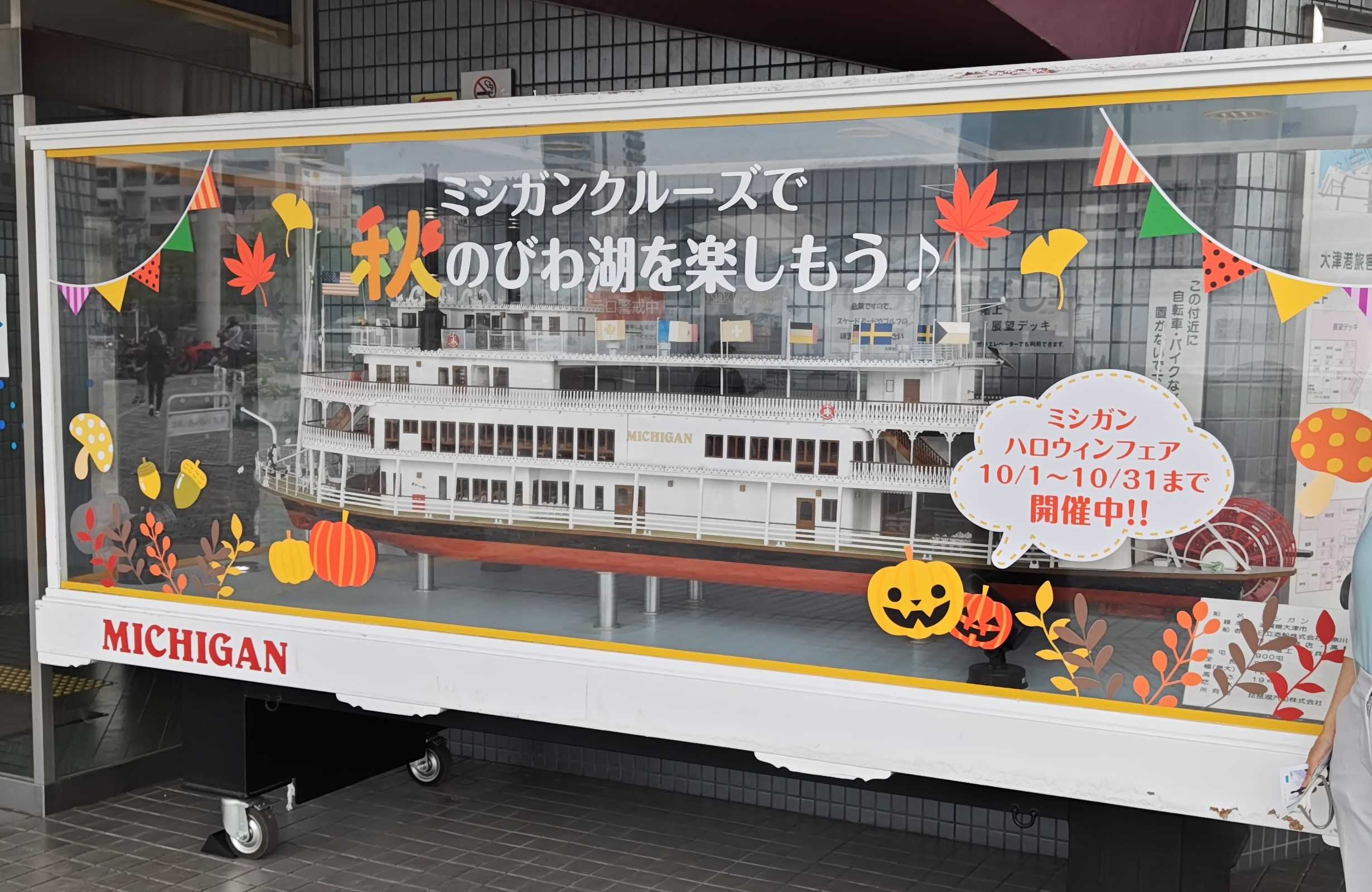 おはようございます。ブヒヨンです。「10/2の日記」の続きですお宿の朝食後、比叡山に向かうべく、準備をはじめたノエさんとブヒヨンでしたが、”まっぷる”を見ながら二人で計画を確認していくうちに、遊覧船に乗ろうか?という話になってまいりました。予約センターにお電話したら、「当日でも乗れますよ」とのことだったので、急遽『ミシガンクルーズ』に参加することにしました。大津港について、無事にチケットを購入!お食事付のコースとか、色々あったようですが、ブヒヨン達は、”60分コースの自由席”をゲットしました。船内では、ガイドさんの案内の他に、専属のパーサーの方々がパフォーマンスを披露してくださり、クルーズを盛り上げてくれましたよ(祝)例によって、機関のところをパチリ!ノエさんは泳げないので、かなりビビっておりましたあっという間の60分で、無事に大津港に帰還しました。というわけで、二日目のメインイベント「比叡山延暦寺」に移動です。長くなりましたので、つづきは次回のお楽しみに。今日も素敵な一日でありますように南無阿弥陀仏 南無阿弥陀仏(つづく)