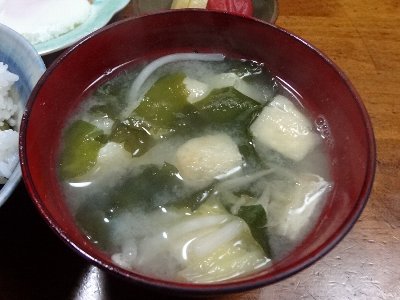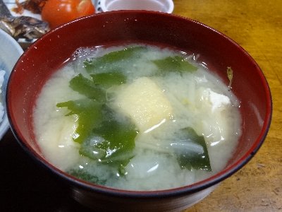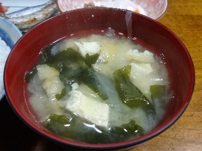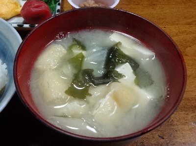 今朝のみそ汁はわかめと油揚げのみそ汁でした我家の定番のみそ汁です油揚げが甘い味噌汁に仕上げてくれますわかめのダシがでてとっても美味しかったです !