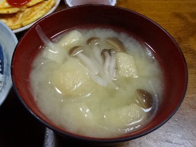 今朝はシメジと油揚げのみそ汁でしたいいですね油揚げの甘い味わいとシメジの食感が美味しく感じます落ち着きますそんな歳になったのですね !