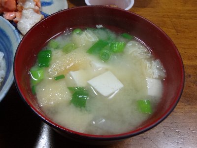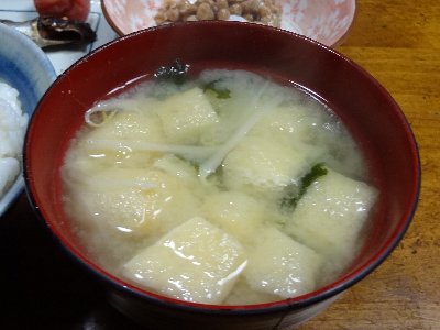 今朝のお味噌汁は油揚げのみそ汁でしたとっても美味しかったですいつもの味わいですから落ち着きますさあ 今日も元気よく スタートです !