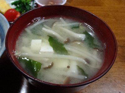 今朝のみそ汁はしめじのみそ汁でワカメにトーフで彩というか味わいを深めましたこの複雑な味わいが美味しさを更にアップしますホッとする味わいです