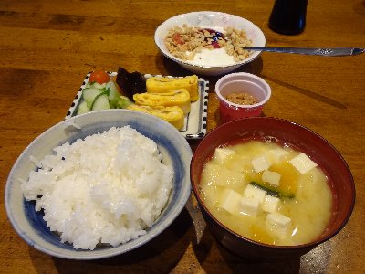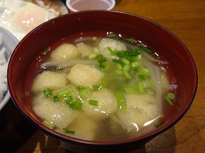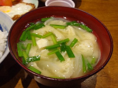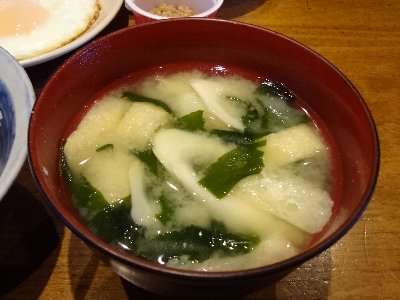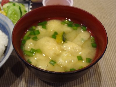 今朝は具沢山のみそ汁でした油揚げにトーフ、玉ねぎとこれでもか って感じですでも とっても美味しかったので元気よく スタート出来ました