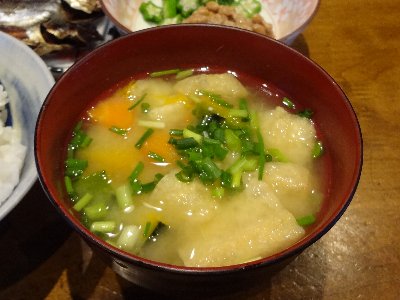 今朝のみそ汁は油揚げたっぷりのみそ汁でした良いですね甘口の美味しい味噌汁となりましたネギがたっぷりと入ると美味しさが倍増する感じです !!