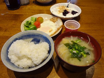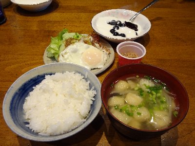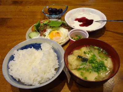 今朝の目玉焼きはちょっと失敗したかな黄味が固くなってしまいましたまあそれもご愛嬌ですとっても美味しい朝ごはんでしたしかし 品数が多いのでビックリですね !