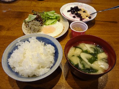今朝は目玉焼きでしたいいですねキャベツに絡ませた卵は一段と美味しさがアップします今朝のヨーグルトはそれは凝った味わいでした三種類のトッピングでそれはもう美味しかったです !!