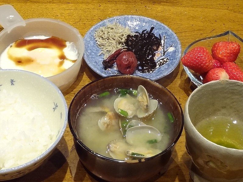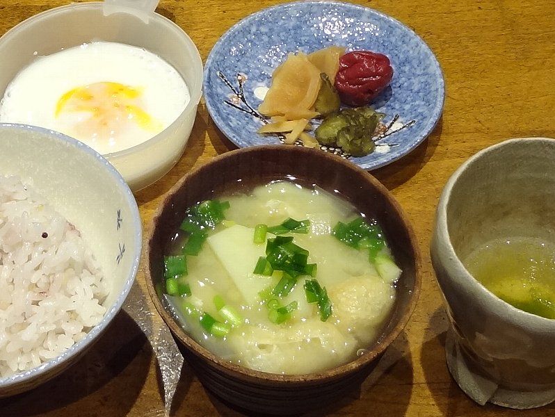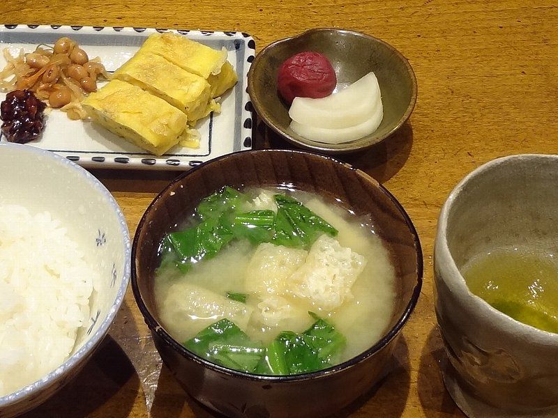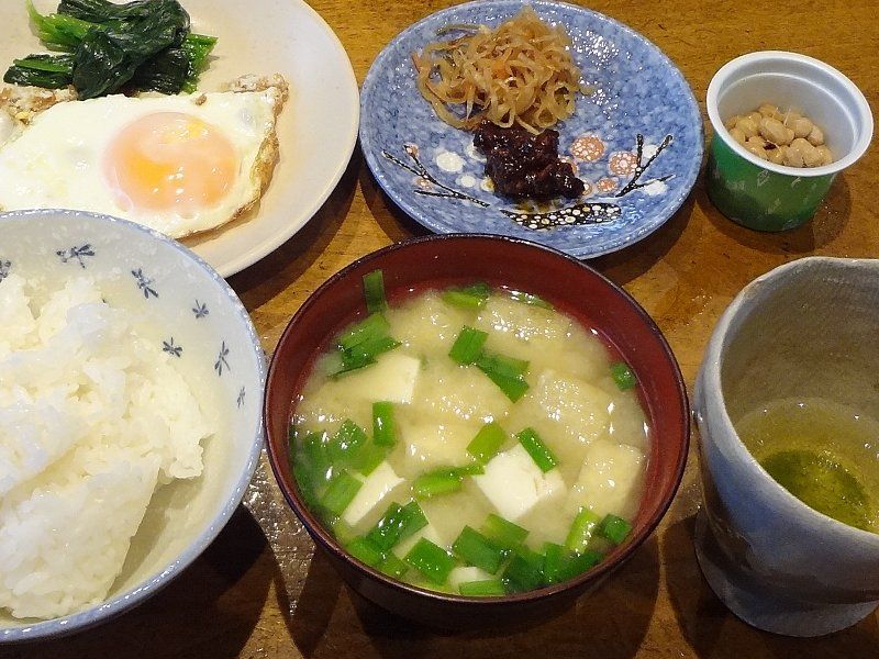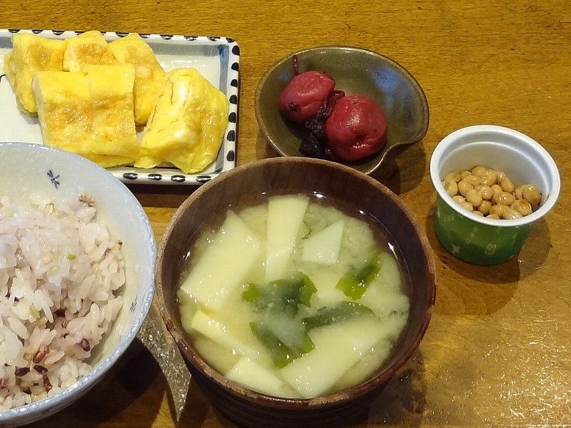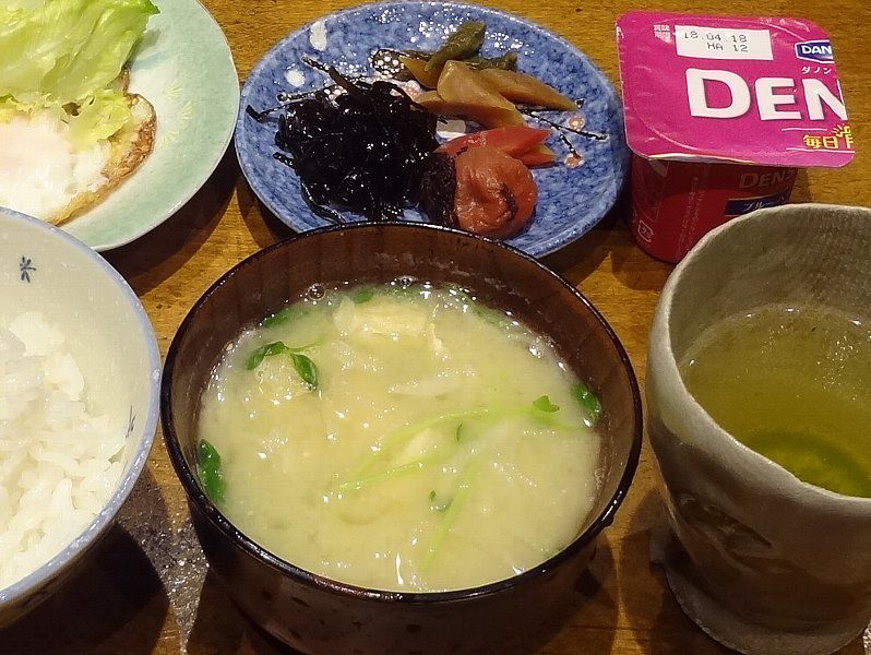 朝ごはんは味噌汁だけでもいいですね他の食材は脇役って感じです様々な栄養がバランスよく摂るのが大切です !