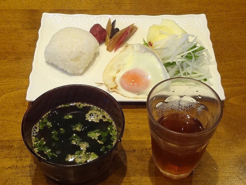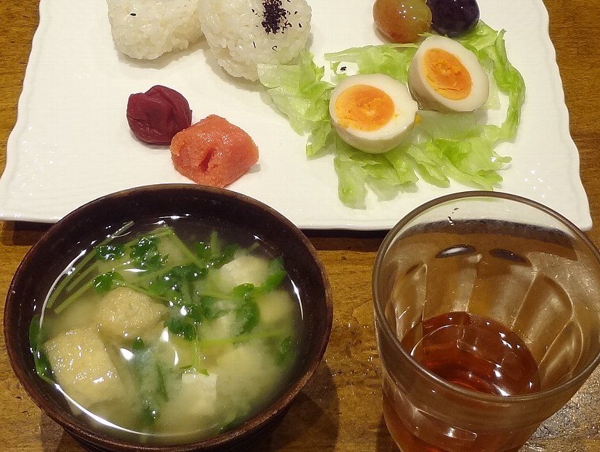 今朝は時間がなかったのでおにぎりが一個の朝ごはんでしたいいですね緊急の日でもおにぎりはしっかりと食べていきますこれが元気の源です