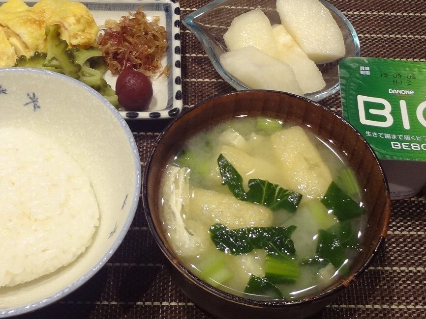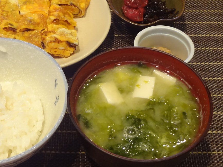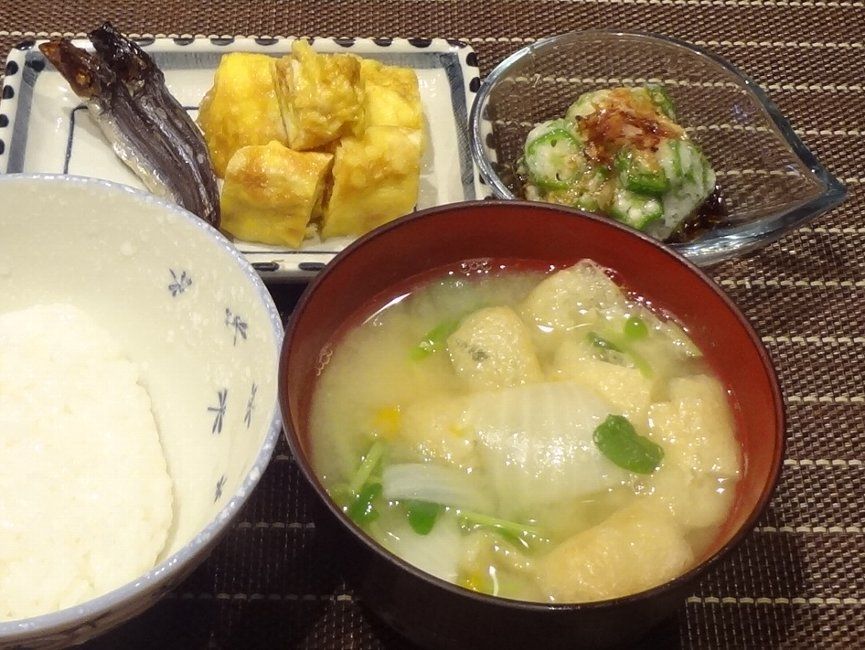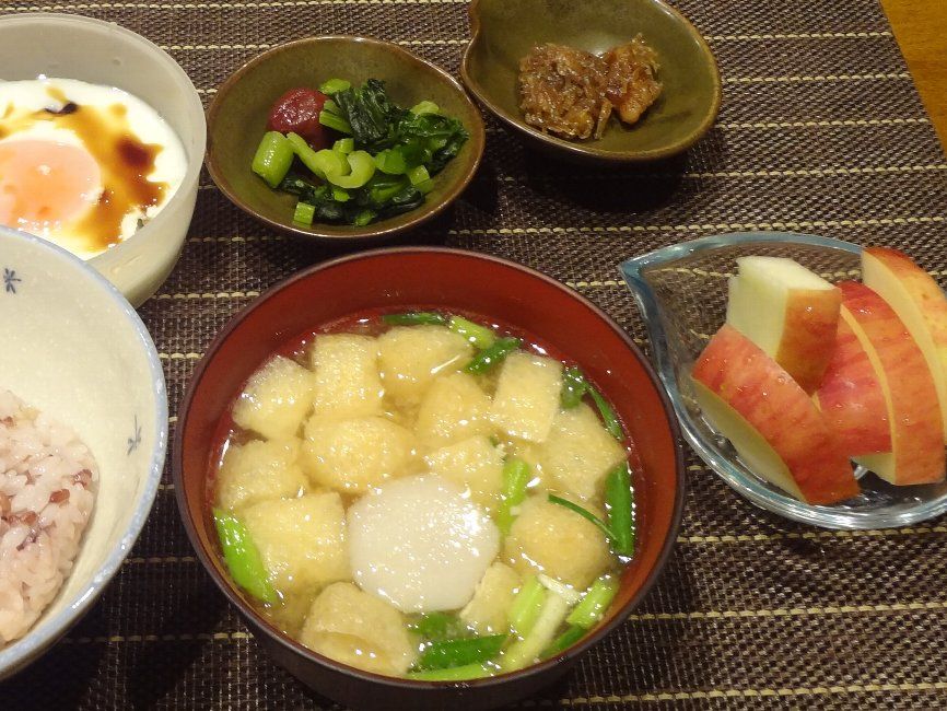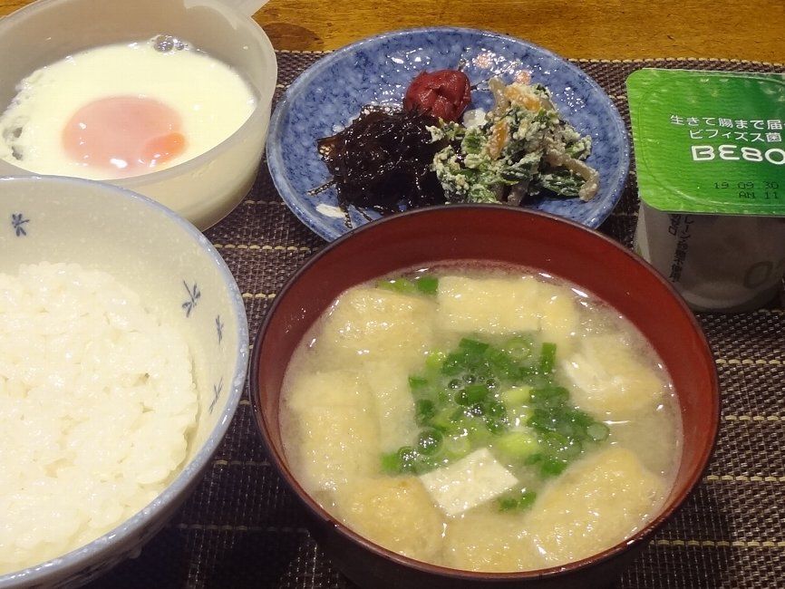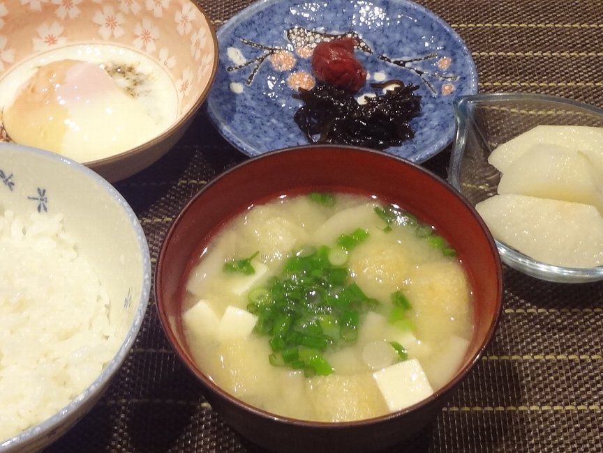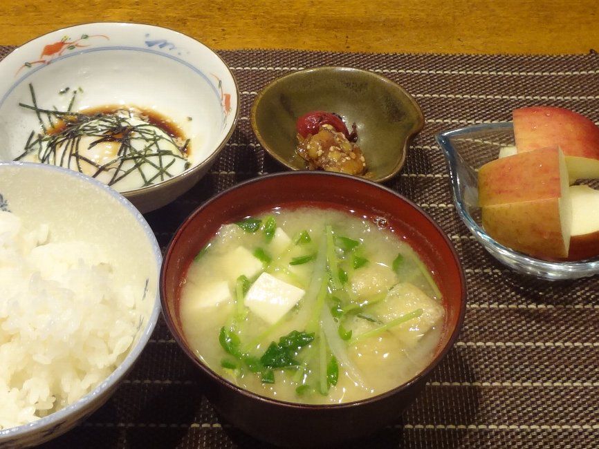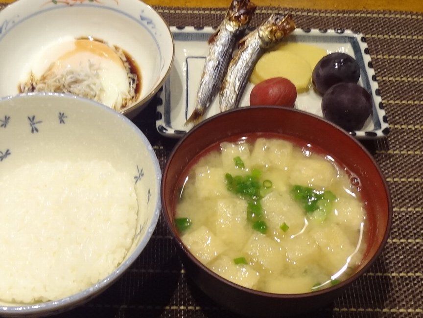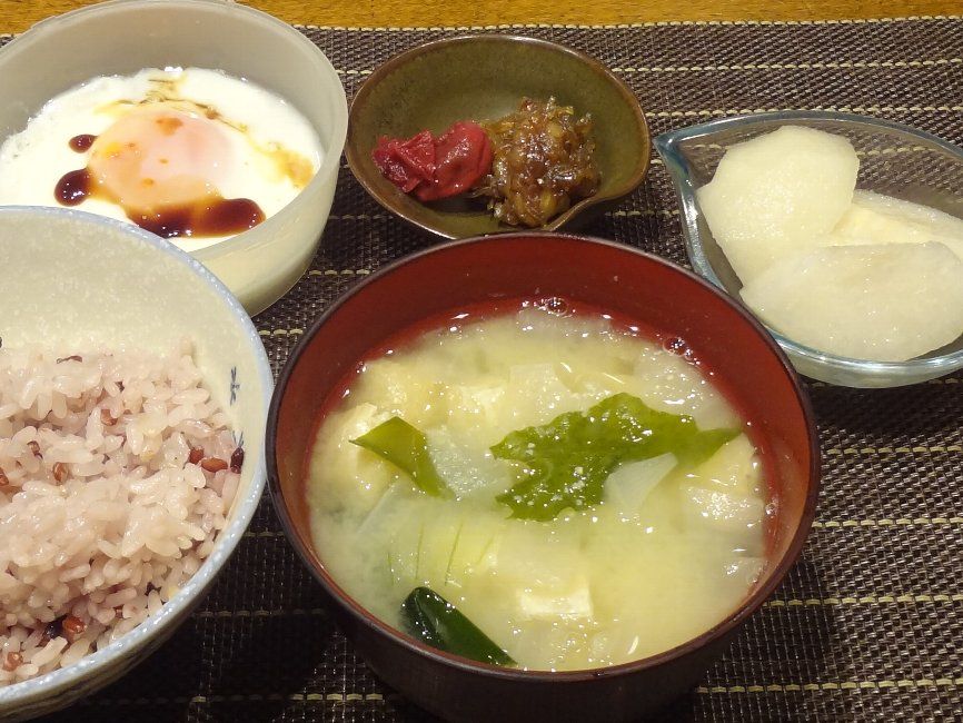 いいですね温かい味噌汁で身体を癒して今日一日が始まります朝夕はちょっと冷えてきましたから身体が温まるとさあ やるぞという気分になりますね