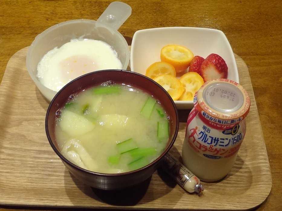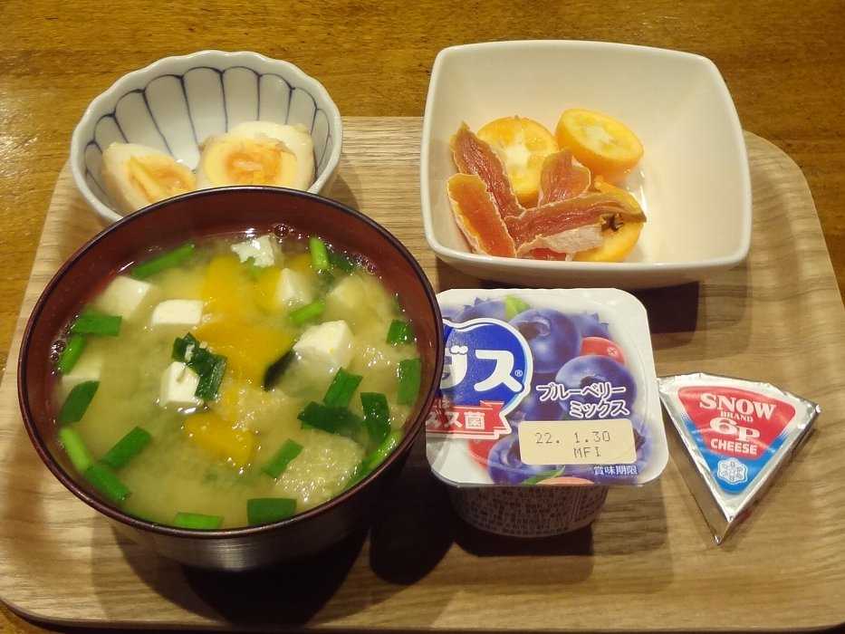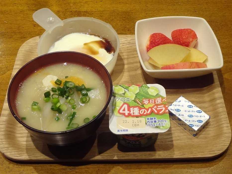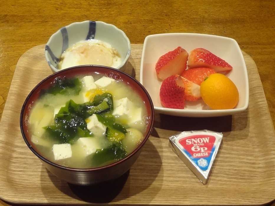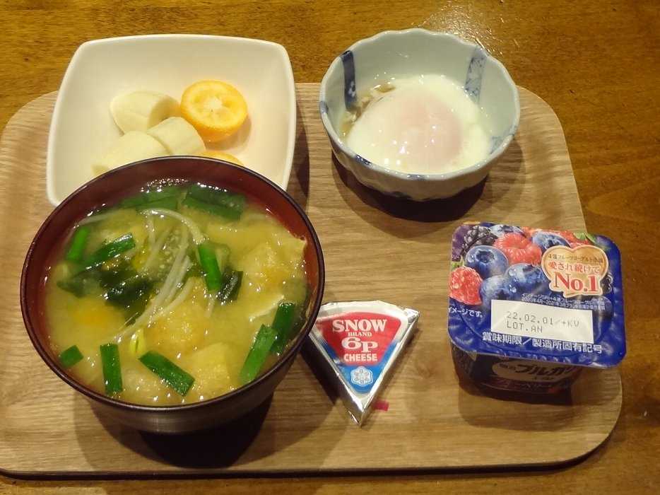 今朝の朝タンパク質は卵とチーズでしたあとはみそ汁の具材かなとっても美味しい朝ごはんでしたさあ 今日も やりますよ !