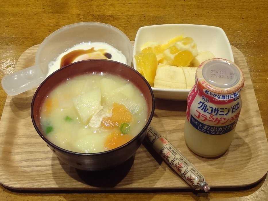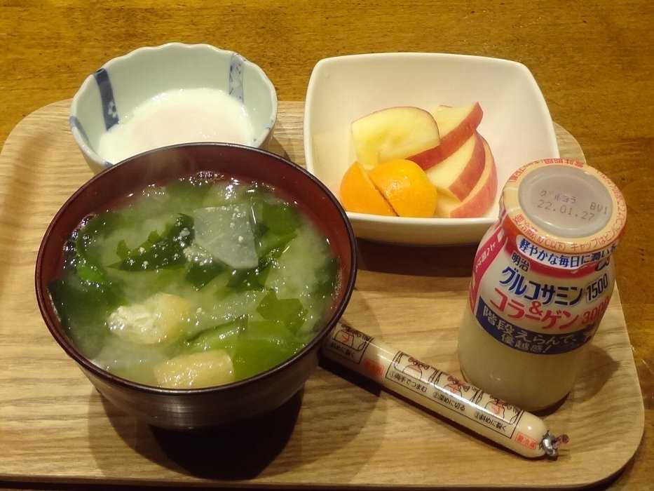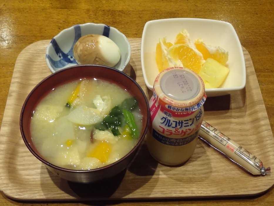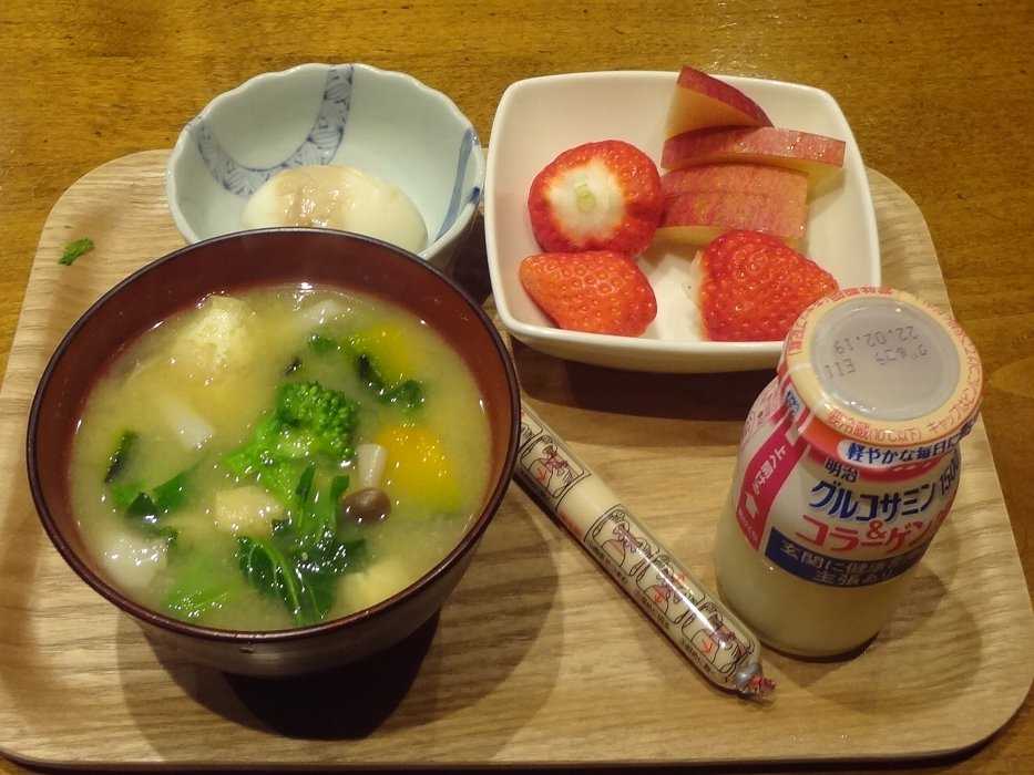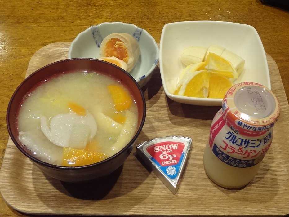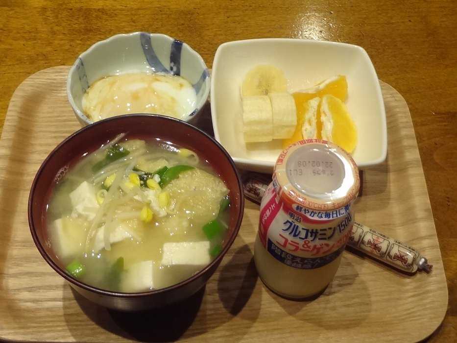 今朝の朝タンパク質は卵とチーズでしたあとはみそ汁の具材かなとっても美味しい朝ごはんでしたさあ 今日も やりますよ !