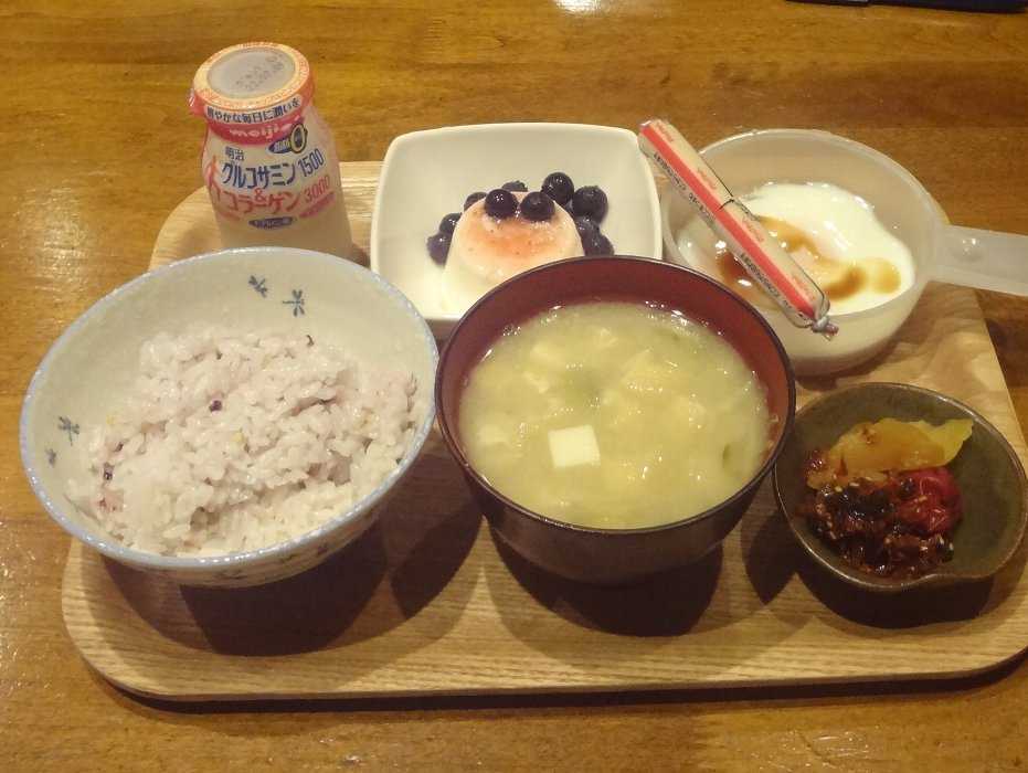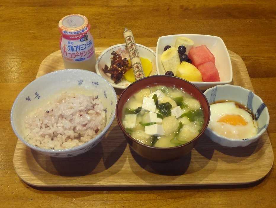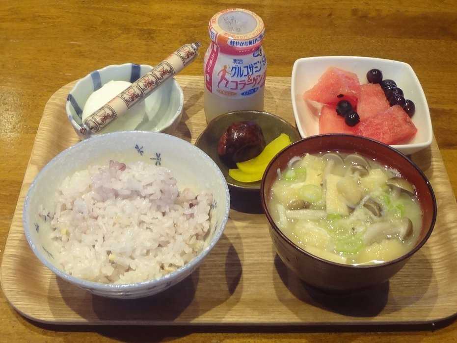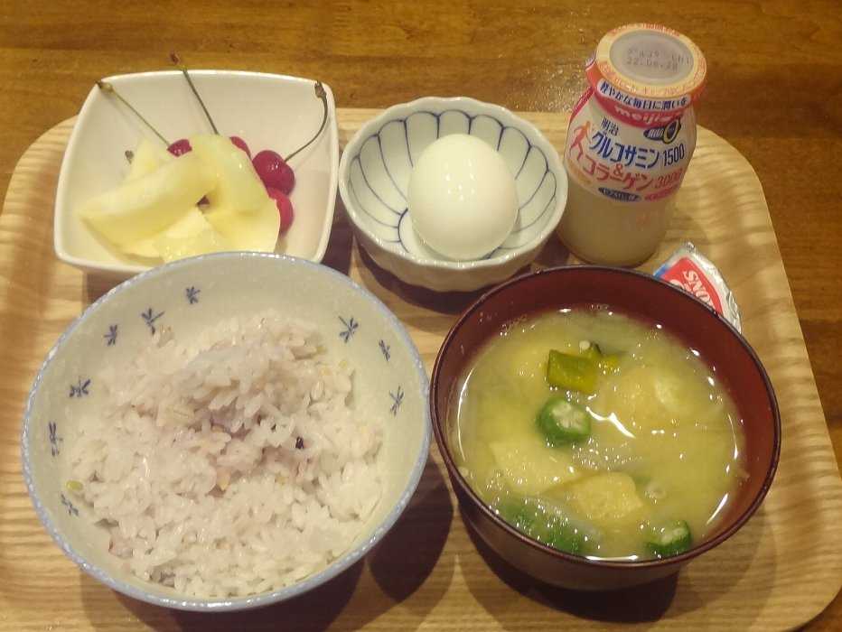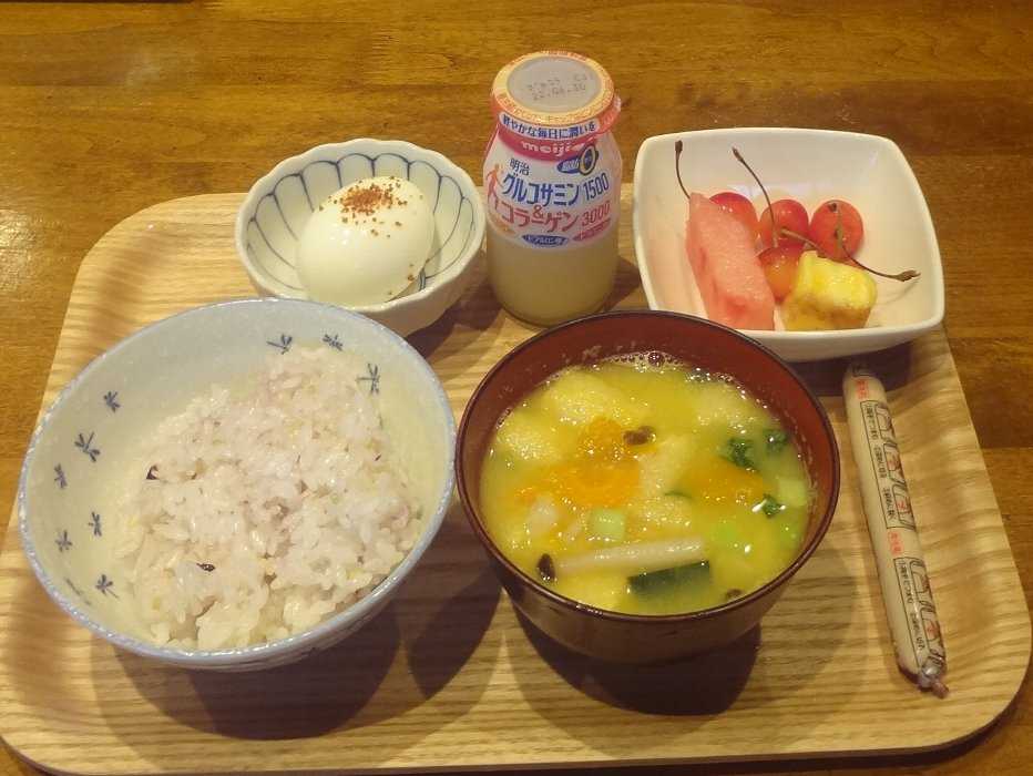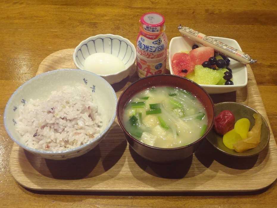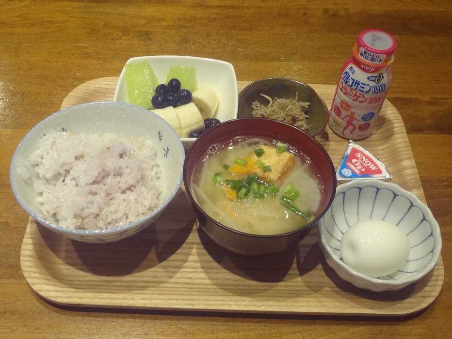 今日の朝たんぱく質は卵と魚肉ソーセージと乳飲料でしたそれから雑穀ご飯とみそ汁とフルーツでしたとっても美味しかったですさあ 今日も張り切ってスタートします
