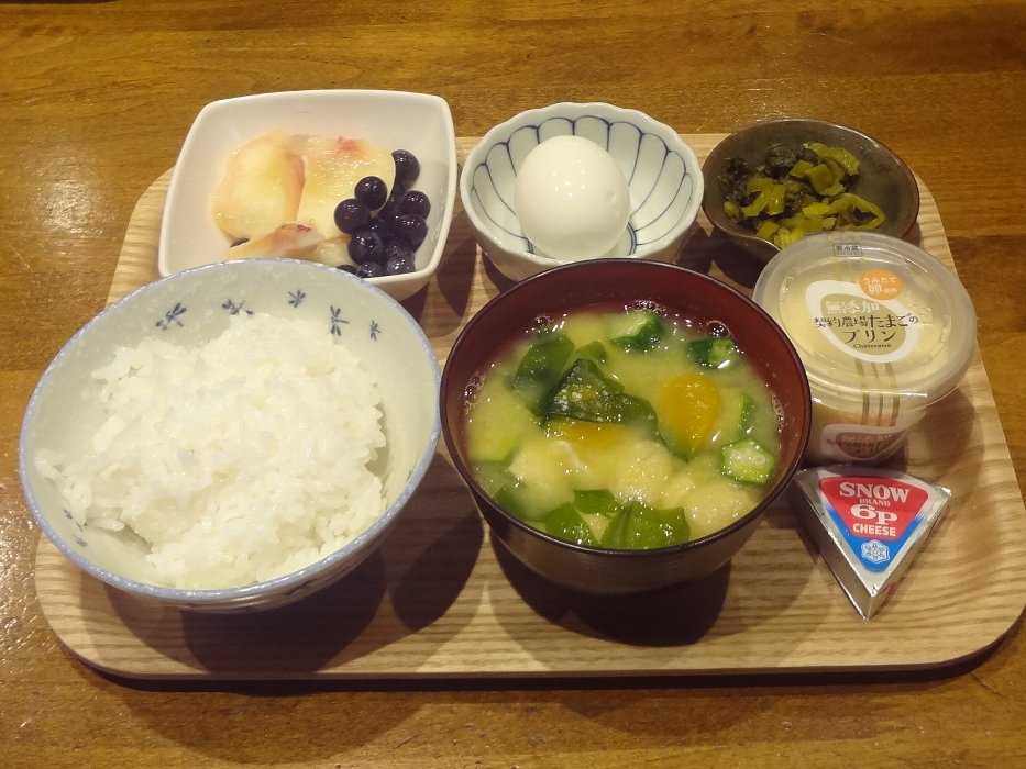 今日の朝たんぱく質は卵とチーズとヨーグルトでしたそれからご飯とみそ汁とフルーツいい感じの 味噌汁ですさあ 元気をもらってスタートです