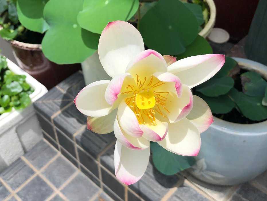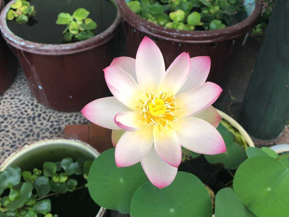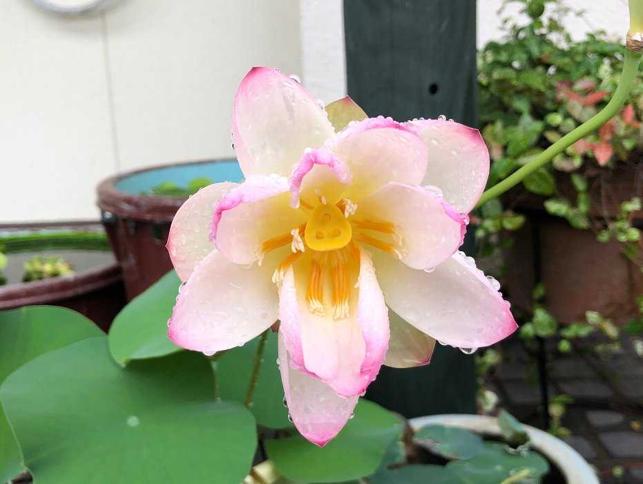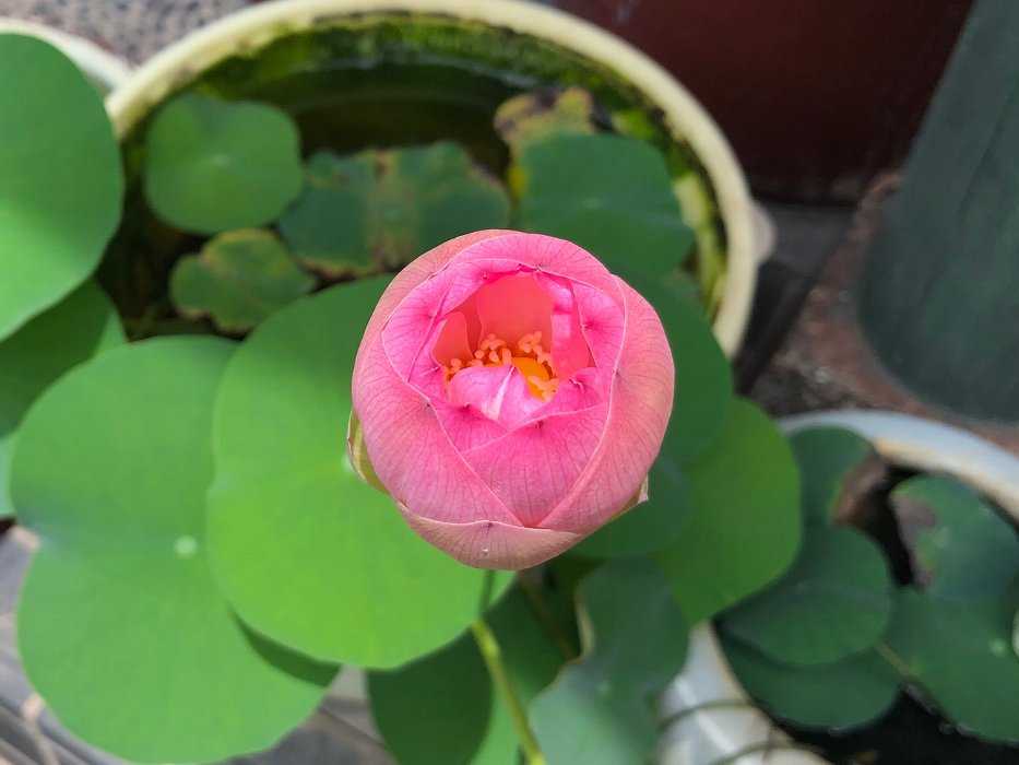 このハスの花は正直いって諦めていました実は小さな植木鉢に植えて大きなタルの中で育てていましたから 大きく根を張ることが出来ず花は無理かなと思っていました意外でした !きれいですね びっくりしました