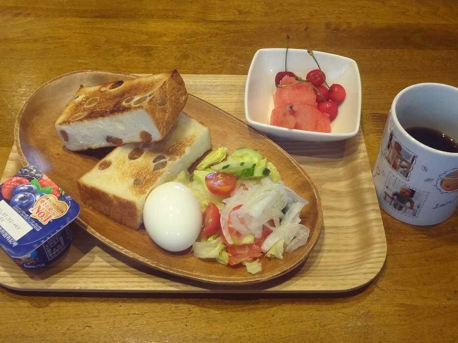今日の朝たんぱく質は卵にヨーグルトとレーズンパンでしたあっさり系の美味しい朝ごはんでしたさあ 今日も張り切っていきます