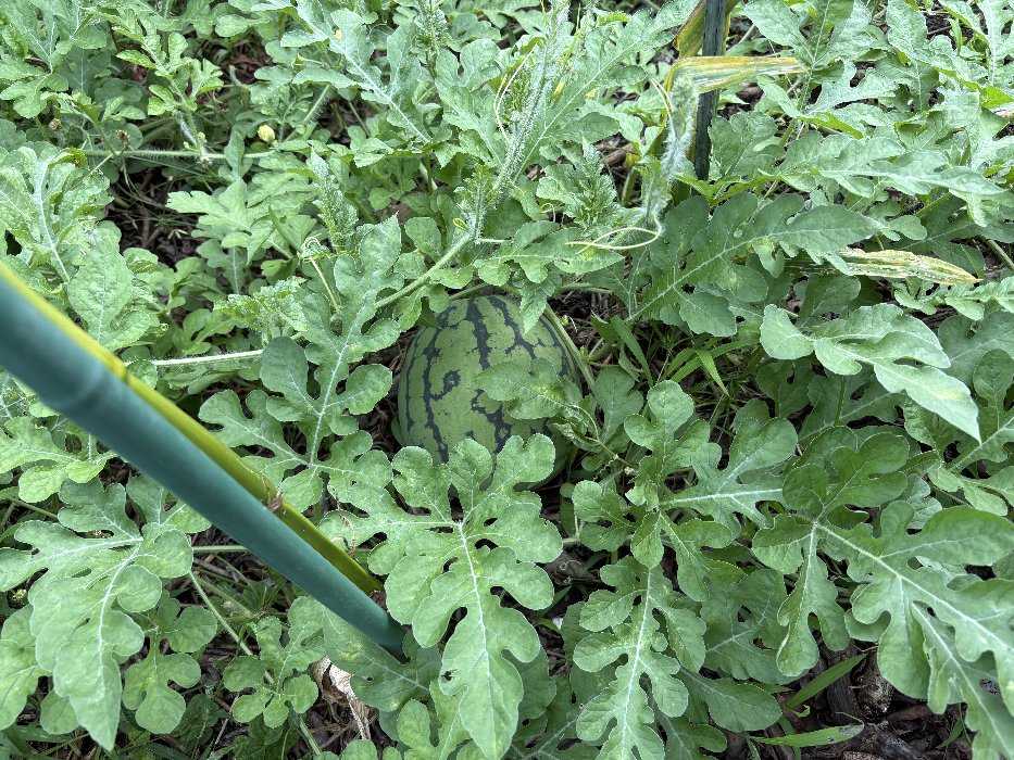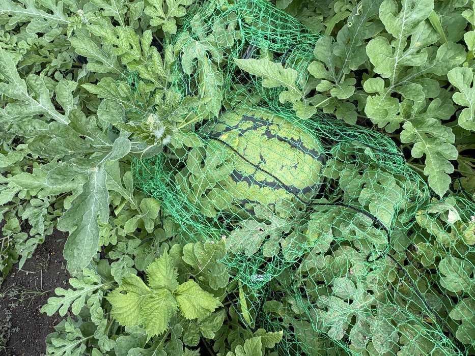 スイカは順調に大きくなっているのですが収穫の時期が難しいですね迷っています4個生っていますから試していきます