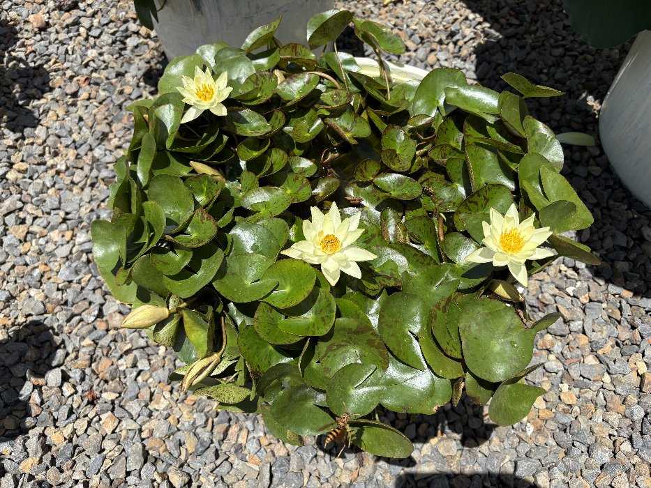 こちらの姫スイレンは花が多いことです一鉢に複数の花を咲かせるのでいいですね恐らく 株分けをどんどん進めているのでしょう来年の株分けが大変になりそうです
