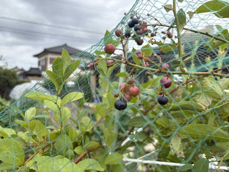 今年のブルーベリーは簡単なネットにしましたそれでも いいかな と思いました