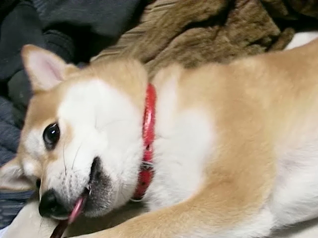 10日以上続く鼻詰まりと咳で「とうとう花粉症発症か」の疑惑の中、3日前から腰痛。 昨夜は38℃の熱と体ガタガタ。今日は完全に病人モードです。 腰はジッとしてれば痛くないけど、なんかのタイミングに急に痛み出します。 そのタイミングの一つは寝返り。鼻詰まりで寝付が悪く、寝たと思ったら寝返りで腰に 激痛。しばらく寝れず、やっとねたらまた寝返りして・・。で、睡眠不足。 昨夜は熱まで出たけど、逆にそれの疲れからかよく寝れました。 今朝は熱も下がり、雨だからか花粉症らしき症状もなく、かなり元気になりました。 私の100倍元気なマリンです。 毎日恒例の全速力ダッシュです。 正確にはぬいぐるみくわえてるので全速ではないです。 それでも写真ではこんな感じしか写りません。 これで家中を10周位します。 やっと止まった。 さすがに疲れたのか水分補給。 でも、このあとまたボール遊びを15分。 ボールをキャッチするのかなり上手くなりました。 2mくらいの高さに投げたボールが落ちてきても、カポってキャッチします。 これはまたいずれお見せします。