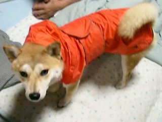 梅雨の季節に備え、レインコートを買ってきました。 これまで服を着せたことがないマリン。 着させることができるか心配でしたが、なにされても怒らない性格はこういう時便利で、思ったより大人しく着てくれました。 サイズを測らずに行ったけど、ちょうどいいサイズです。 帽子はかぶせるものでしょうか? 着せたら、散歩に行くものと思ったのか、玄関へ向かいました。 嫌がってる様子はないので、雨降りで試すのが楽しみです。 明日降ってたら早速使ってみます。