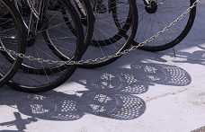 自転車置き場に日が差して 荷物籠の影がおもしろい