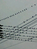 おやつを買って歩いてると駅前の歩行者用信号青の時間が短いことに気づいた『あ・・・青だ』って思っても右左折してくる車がいてすぐには渡れないのにいざ渡り始めたらもう点滅してる。。。え~っどういうことぉ~時間短すぎじゃん数えてみたの1・2・3・4て。。。そうしたら青に変わって15秒ほどでもう点滅してるんだよぉ~車の信号はまだまだ青。。。歩行者信号ってこんなに青の時間短かったんだぁ~って改めて感じました。。。普段は気づかないもんね~。もう15秒延ばしてもいいんじゃないかなぁ~。。。しばらく歩くと頭の上で鳥の声かなりうるさいです見上げると・・・ムクドリかな。。。 電線にズラ~~~~ッと並んでますこれでもまだ少ないほう前に駅前の電線で見たときはもう止まる場所がないくらいギッシリだったから。。。もちろん泣き声もハンパないくらいすごいよ~ちょっと気持ち悪っまた歩いてると今度は後からパトカー急に『ウーウー』ってサイレンを鳴らしながら通り過ぎて行きましただれか信号無視でもしたのかな~って思ってたらおまわりさんに停められてる原付バイク発見どうやらノーヘルだったのね。。。若いあんちゃんかと思ったらなんと・・・おばちゃんですおいおい。。。大人のおばちゃんなんだから決まりは守ろうよぉ~ホント困った世の中だね。。。
