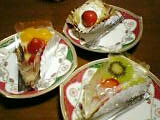 コーラスの練習に自転車で出かけたので帰りに近所のケーキ屋さんへ寄りました昔からあるお店ですケーキは全品250円。。。前は200円だったけど特別おしゃれなケーキはなくてアップルパイが有名かも。。。とても庶民的。。。ショウケースのケーキに名前なんてありません。。。注文するときは『これと~これと~』って指差します買ったケーキはなんと。。。紙袋に入れてくれました自転車で帰るんだけど・・・と思いつつそ~っとそ~っと自転車こぎましたいちごのケーキはゴロ~ンてなってましたが。。。大丈夫 じゃんけんでケーキ争奪戦きてぃらんは1番勝ちで~す しっとりとしたココアスポンジがはさんであっていちごとみかんは寒天で固められてました。。。ゼリーではない歯ごたえがあるよ~クリームはバタークリーム懐かしい味がしましたとてもおいしかったです